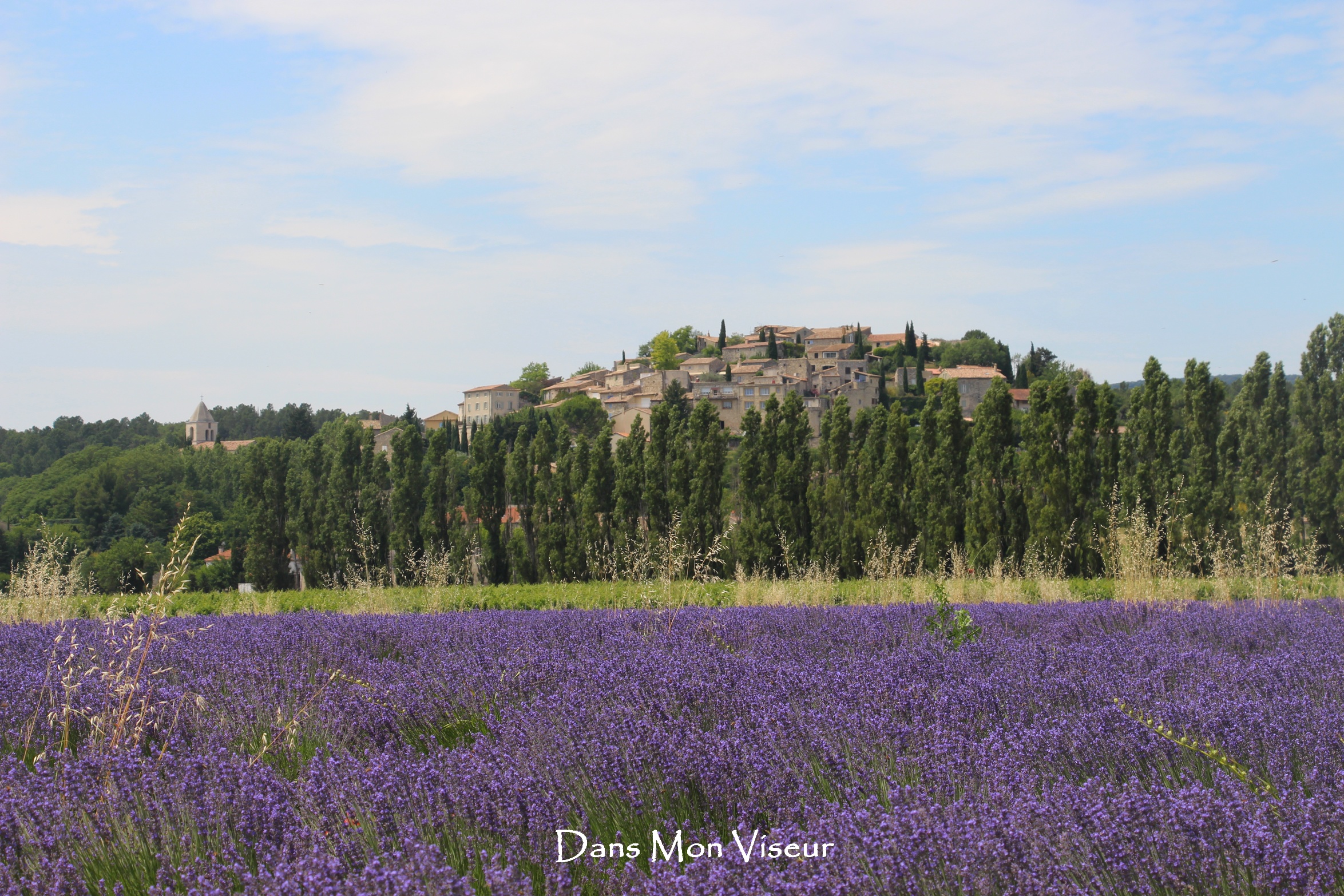 Mais avant d’atteindre cette destination, je décide encore une fois, de tenter ma chance sur un chemin assez hasardeux aux alentours de Valaurie. Je suis sure que l’on peut avoir un chouette panorama avec les lavandes et le village. Bien vu ! Après plusieurs essais de chemins (plus ou moins fructueux d’ailleurs), j’en trouve enfin un !