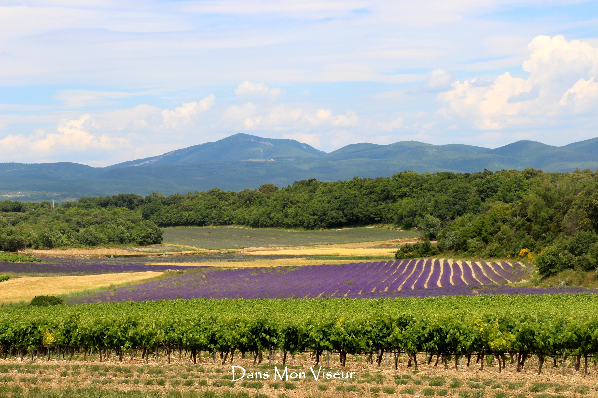 Avec le coffre plein de bouteilles d’eau, de glacière, de brumisateur, me voilà partie sur la route des lavandes dans le Sud de la Drôme, sur le secteur de Grignan.