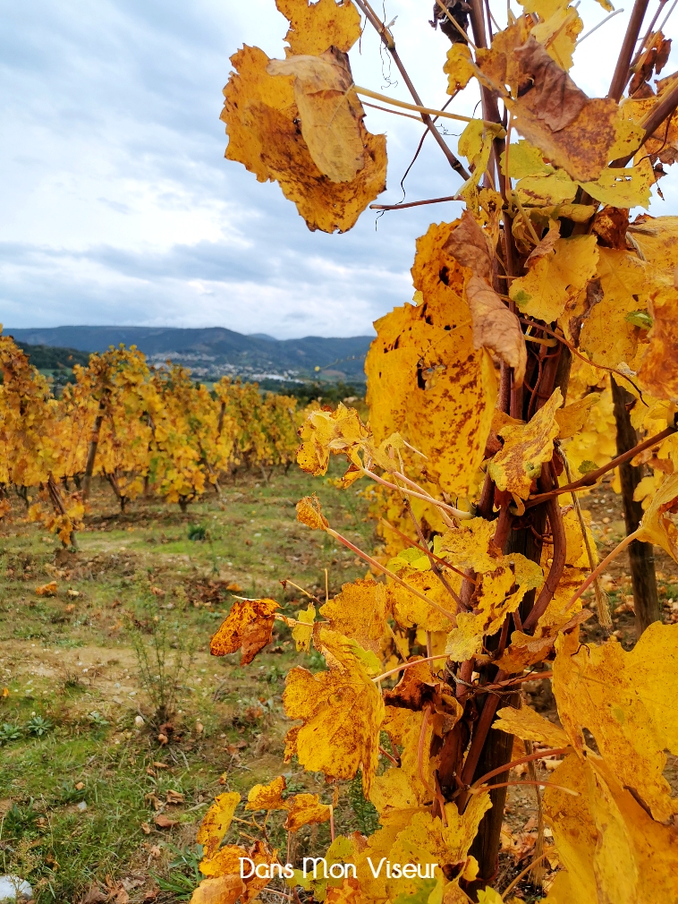 Si vous me suivez régulièrement vous le savez, j’adore me balader dans les vignes autour de chez moi (quelle que soit la saison d’ailleurs). En 5 minutes de voitures, je suis au cœur des vignobles, avec toujours de beaux panoramas. En automne, c’est encore différent… les vignes dorées à perte de vue sont juste sublimes.