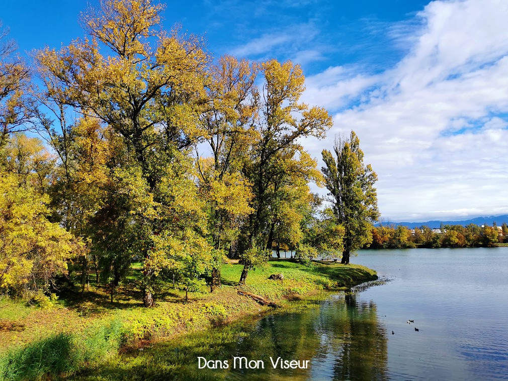 C’est pas bien loin de chez moi que je me balade le nez en l’air ! Au bord du Rhône, on a la chance de pouvoir profiter de la fameuse « Viarhona » cette voie douce qui relie le lac Léman à la Mer Méditerranée : à pied, en vélo, en trottinette, en courant, en cheval .. tout y est possible. C’est un endroit calme et ressourçant (même si c’est bien fréquenté suivant les moments de l’année). Et en période automnale les couleurs et les lumières sont vraiment incroyables.