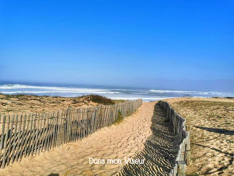 Il y’a décidemment des destinations qui vous attirent plus que d’autres. Retour à Labenne océan, donc ! Ici il ne nous manque que le bruit des vagues qui viennent casser sur l’immense plage. Elle est simple cette photo : des dunes, du sable, un petit chemin qui mène droit vers la plage, et l’océan assorti à la couleur du ciel.