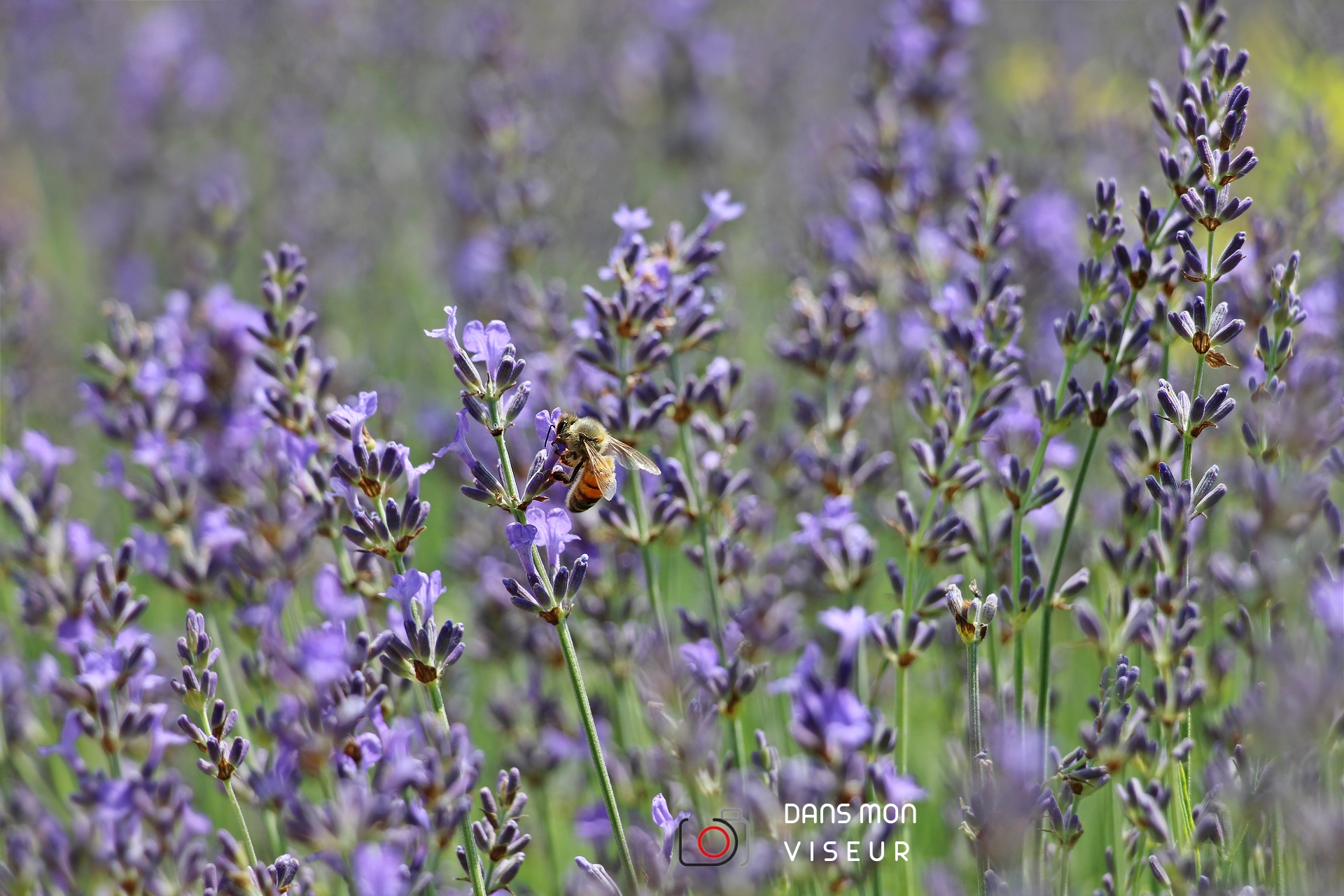 Comme à chaque sorite, je constate que ca butine, que ca volette, et qu’il y’a bien de la vie dans ces champs. Un paradis pour les sens : ca sent bon (enfin, ca dépends des gouts de chacun.. moi perso la lavande c’est loin d’être un parfum que j’aime, mais dans le champs en pleine fleur, ca passe encore), C’est beau à regarder, c’est agréable à écouter (l’ondulation des rangées et les abeilles), c’est doux au toucher ! Certains vous diront que c’est également très bon à déguster (bon, de mon côté c’est comme l’odeur .. la gouter me tente moyennement).